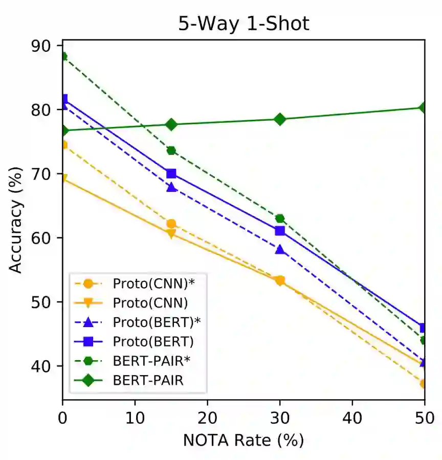 总结来说,FewRel 2.0 相比 1.0 版本增加了两个挑战:跨领域和“以上都不是”。经典模型在这两个挑战面前的表现都不尽人意。尽管作者在论文中提出了可能的解决方案和模型,但表现仍然有较大的提升空间。