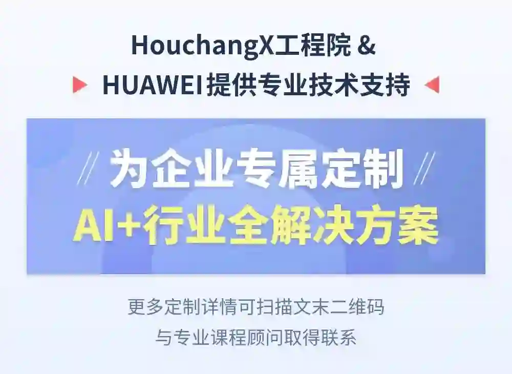 HouChangX工程院可根据真实情况,为你的企业量身定制AI落地产业的全解决方案。同时,你也会获得华为云AI专家提供的相应技术支持。