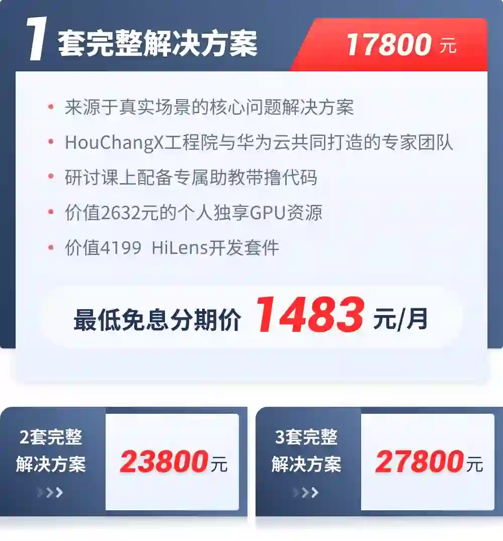 为保证学员拥有最良好的学习环境,报名任意1个解决方案,我们还会赠送价值4199元的Hilens开发套件,实现真正的落地应用。
