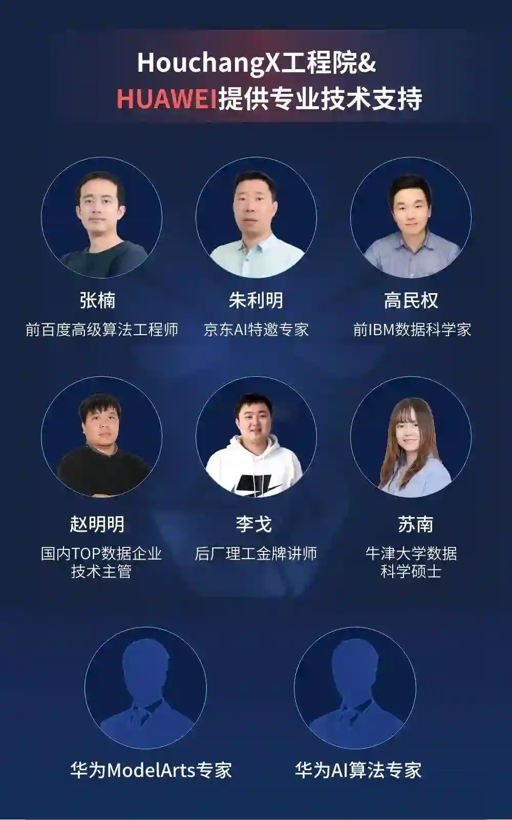 HouChangX工程院的专家团队整合IBM、百度、阿里巴巴、商汤科技等海内外一线名企和知名实验室,更有华为AI专家提供专业技术支持,满足学员多层次和个性化学习需求。