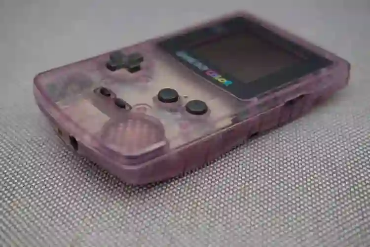首先,GBC 是半透明版(通透程度降低),而它的透明外壳带着淡淡的紫色,官方称为之为「Atomic Purple」。这个配色在阳光下尤为漂亮,有一款 N64 手柄也采用了类似的设计。任天堂同期推出的还有白色半透明版的 GBC(Neotones Ice),后期还有不少限定/联名的半版本。