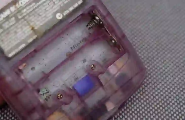 两节 AA 电池能提供 10 个小时的续航时间,透过电池仓可以看到它诞生年份为「1998」。另外我们也能看到,为了防止私自拆卸 GBC 使用了 Y 形螺丝,不过这并没有难倒动手能力强的极客们(还有那些奸商们)。