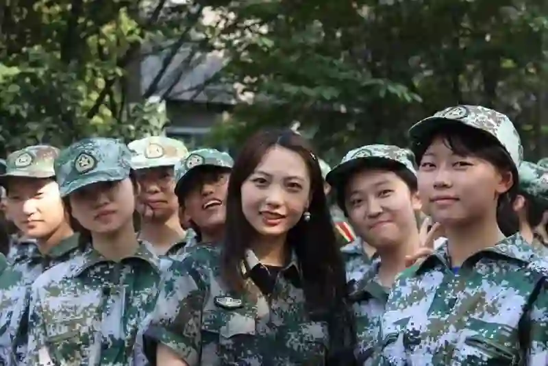 军训第一天,同学们刚刚穿上崭新的军装,兴奋溢于言表。而施老师则留着一头干练清爽的短发,身着迷彩服,斜背着挎包,笑盈盈地来到我们一连四排,向大家挥示意。应家长们的要求,施老师举着手机定格了大家的飒爽英姿。小结一句:与伊初相见,犹是故人归。