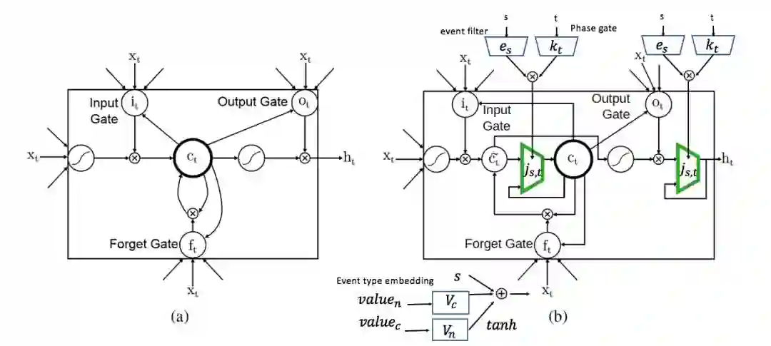 在经典LSTM的基础上,我们为每个隐藏层神经元设计了一个事件门(event gate)。如果事件门打开,那就正常按照LSTM来更新;如果事件门关闭,就保持原来的值不变,就当这个没有这个输入。