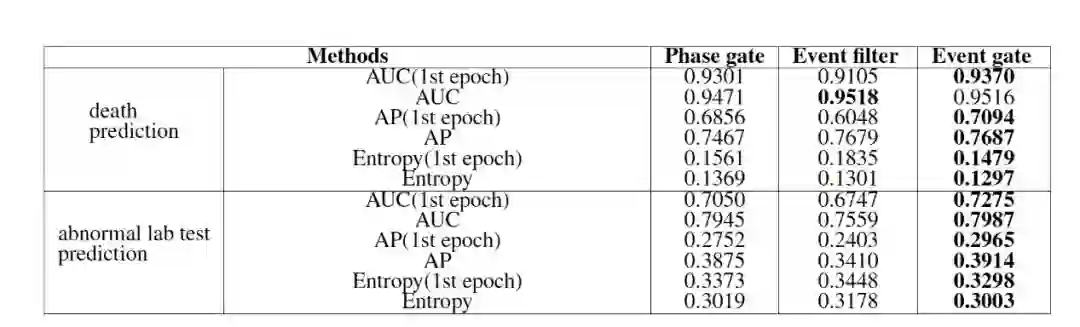 这样模型学到的向量表征便可以对之前提到的三种时序依赖比较敏感。比如:当化验事件发生频率低时,低频化验神经元和高频神经元没有明显差异,但化验事件发生的频率高时,高频神经元因为更新计算了更多次,与低频神经元差距放大,我们的联合表征便可以由此分辨关键事件的频率变化。