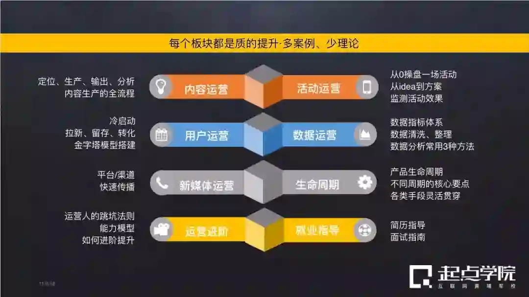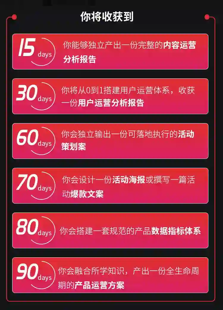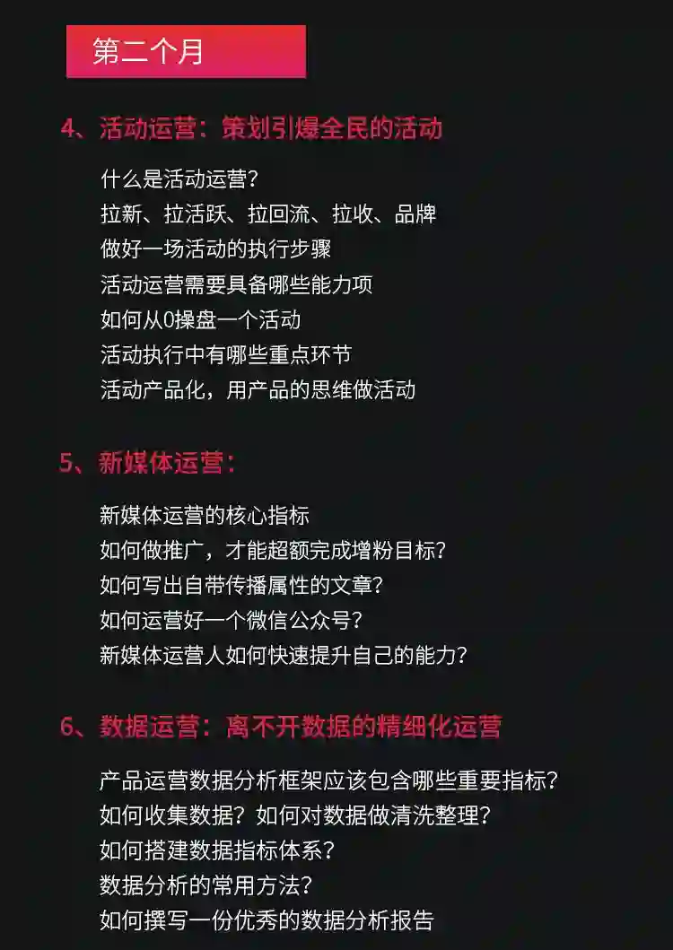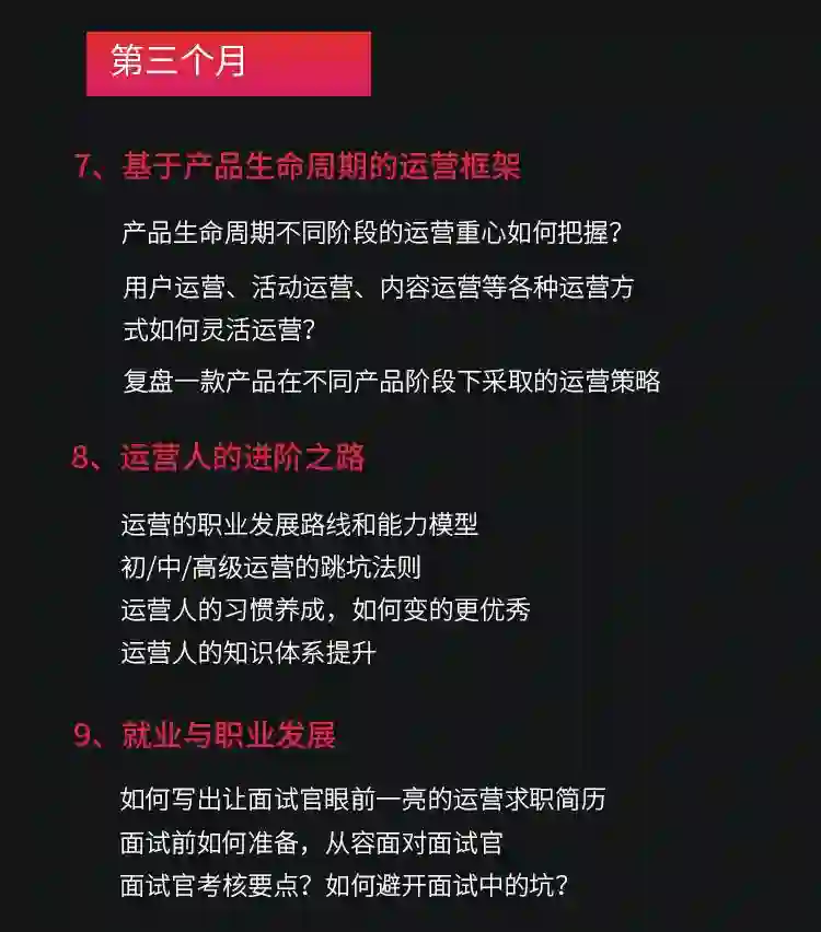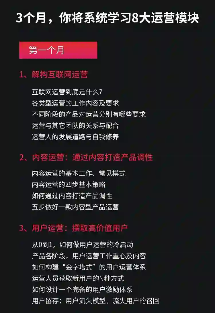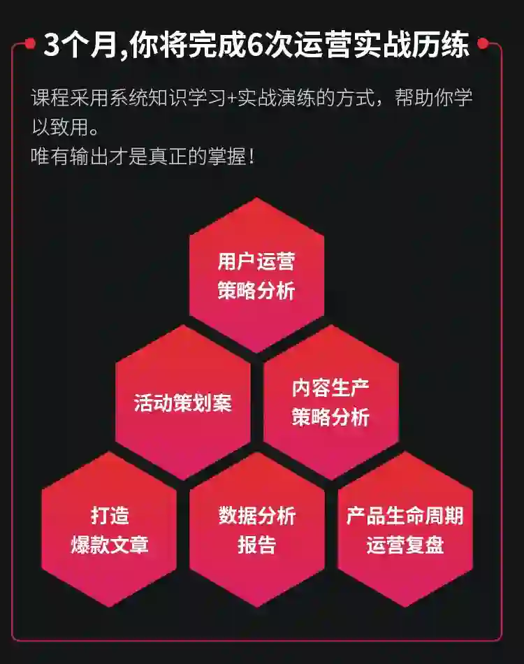 经过这样一套完整的体系化学习,将会很扎实的解决【对于不同运营板块的内容了解、成熟的运营知识体系】这两个问题