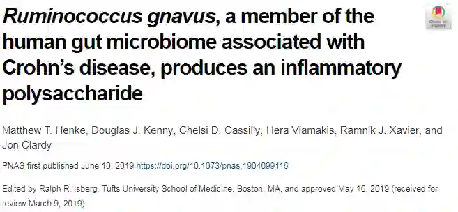 美国麻省总医院(MGH)布罗德研究所(Broad Institute)和哈佛医学院(Harvard Medical School)的研究人员现在发现,一种与克罗恩病相关的、名为活泼瘤胃球菌(Ruminococcus gnavus)的细菌会释放某种多糖(或糖分子链),触发免疫反应。