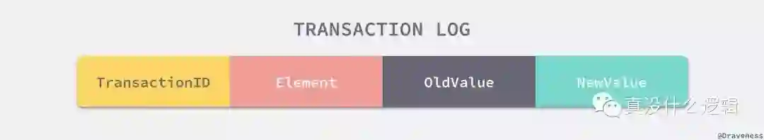 为了实现确保事务能在执行的任意过程中回滚(原子性)并且提交的事务会永久保存在数据库中,我们会使用事务日志来存储事务执行过程中的数据库的变动,每一条事务日志中都包含事务的 ID、当前被修改的元素、变动前以及变动后的值。