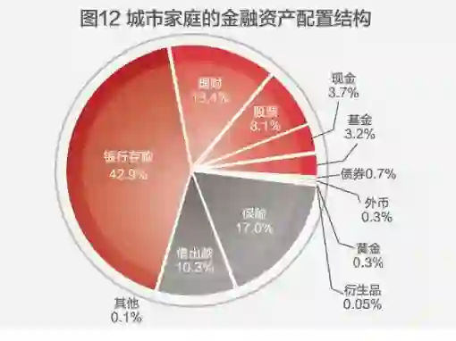 而金融资产配中,42.9%为银行存款,股票仅占8.1%,基金则仅有3.2%,债券仅为0.7%。