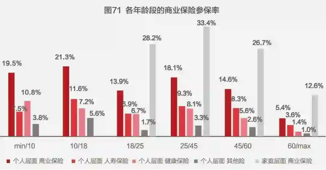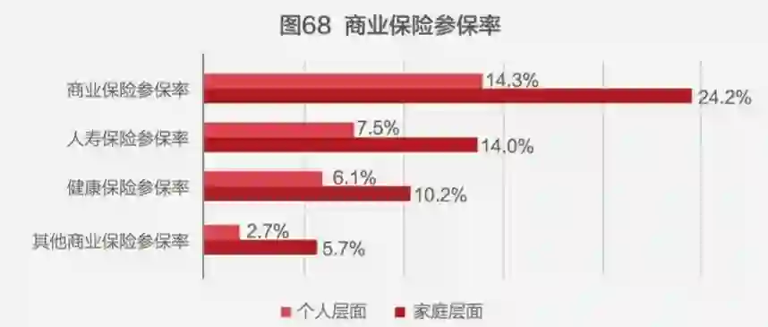 五是,家庭商业保险参保率偏低,仅有不到15%的家庭成员拥有商业保险。
