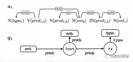 这篇文章关注的是用模版解决知识库问答(KBQA),提出了 QUINT 方法可以通过问答对自动学习和生成模版,避免了手工生成模版。QUINT 方法的通过训练生成模版的过程主要分成三个步骤:1)讲问句翻译成查询:对于训练的问答对中的问题文本进行命名实体识别和实体消歧,针对问答对中识别出的实体和答案中的实体,在知识库中找出最小的包含这些所有实体的子图,然后以问题中的每个实体为起点,寻找子图中以 CVT 节点为中间节点的二度(length two)路径以及不包含 CVT 节点的一度(length one)路径,并将这些路径翻译为相关的查询,通过将出发实体 a 替换为 ?x 以及将中间节点CVT节点替换成类似 ?cvt1。2)生成对于答案实体类别的约束:通过对问答对中的实体的类别查询确定当前问题的答案实体应当所属的类别。3)问题文本和查询的对齐:首先将问题文本的词项和子图中的要素构建一个二部图,通过将对齐任务翻译为整数线性规划问题,获得此项和子图要素的对应结果,再将问题中的具体的词项内容替换成仅保留词性和对齐关系,子图中的实体和关系也去除具体内容,得到最终的模版,模版实例如下:
