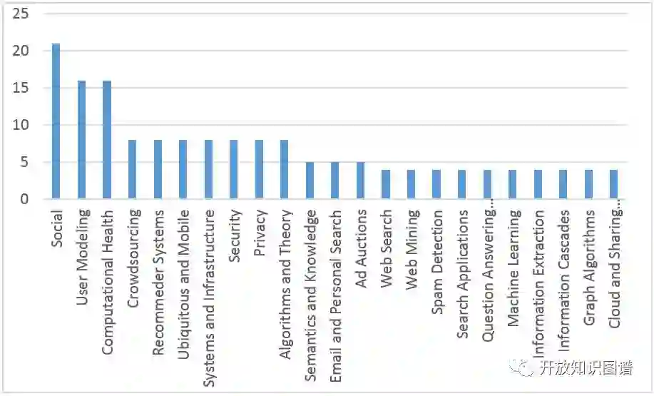 2017 年 4 月 3 日至 8 日,第 26 届国际万维网会议(26th International World Wide Web Conference) 在澳大利亚珀斯顺利举行,本届大会共收到 966 篇论文投稿,比去年增长了 33%,大会最终录用 164 篇论文,录用率为 17%。不同主题下的收录论文数量如下表所示: