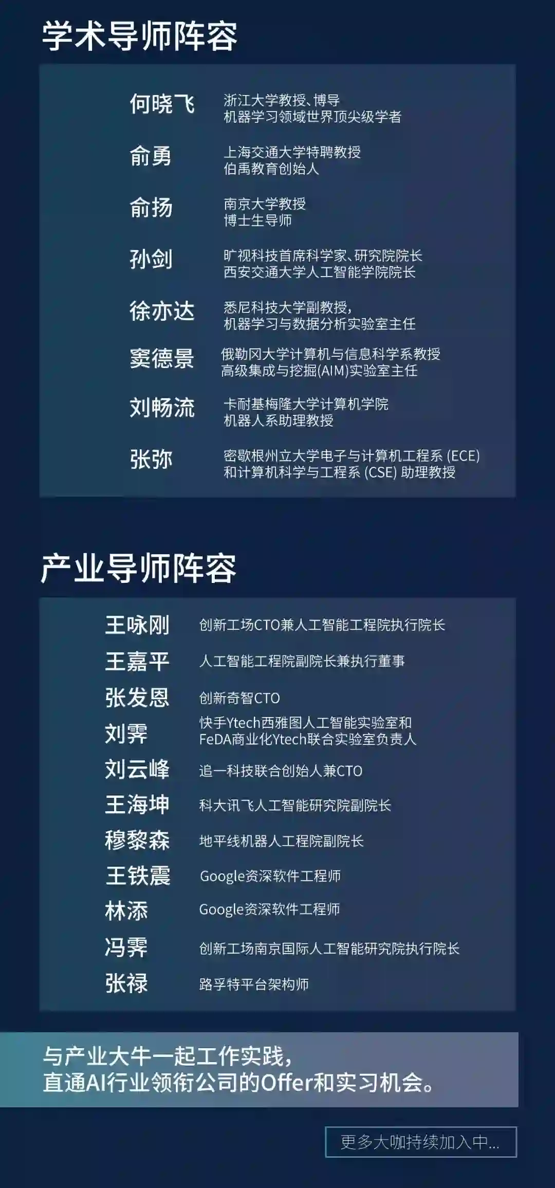 3、强大导师的阵容,与学术大咖、产业大牛面对面交流学习