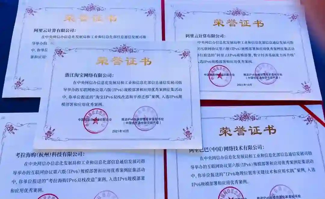此前,阿里巴巴负责的5项IPv6改造案例还入选了由中央网信办、工业和信息化部组织评选的100个IPv6规模部署和应用优秀案例。