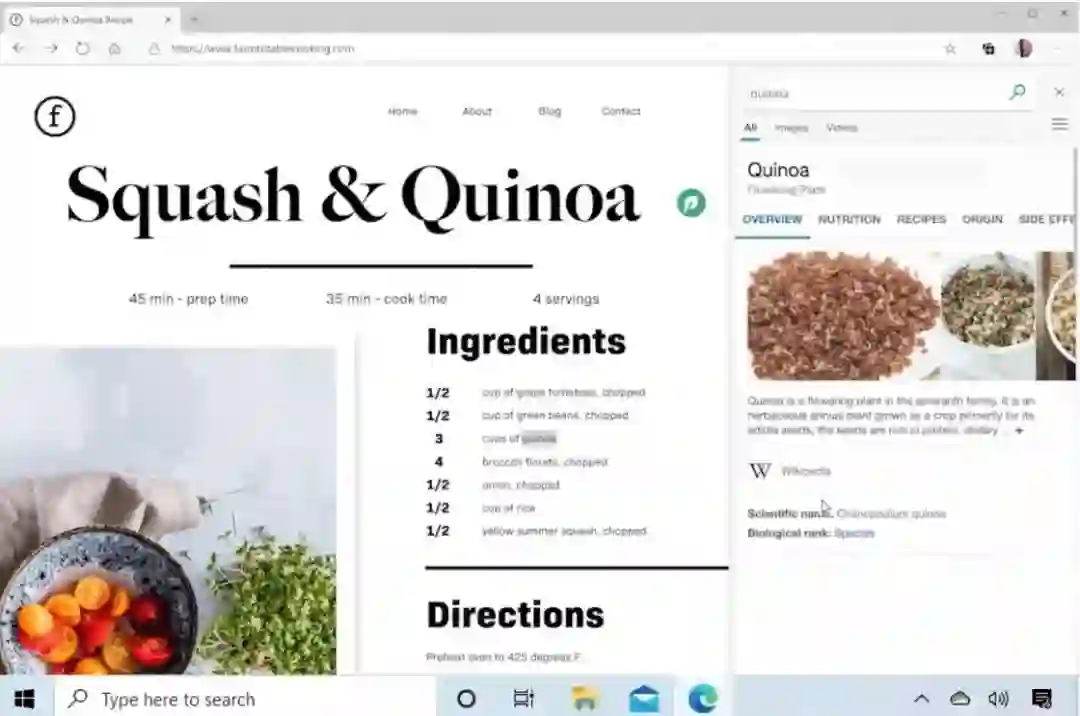 搜索侧边栏:浏览网页遇到一个不熟悉的词时,通常我们都会在地址栏输入关键词,跳转搜索,然后再回到网页进行浏览。此次 Edge 新加入了一个搜索侧边栏,当用户在网页上看到想搜索的词时,选中它并右键选择搜索,会直接右侧显示搜索结果,这样你就不需要来回在标签页里跳转了。