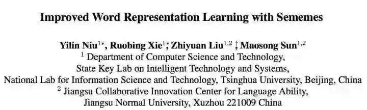 Yilin Niu, Ruobing Xie, Zhiyuan Liu, Maosong Sun. Improved Word Representation Learning with Sememes. In ACL, 2017.