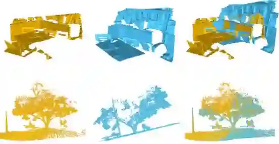 我们提出了3DSmoothNet,这是一个完整的3D点匹配工作流程,该流程使用siamese深度学习框架,并使用体素平滑密度值(SDV)表示完全卷积层。后者根据兴趣点计算并与局部参考帧(LRF)对齐以实现旋转不变性。在3DMatch数据集上使用该方法,我们构建了紧凑的,基于学习的和具有旋转不变性质的32维度3D点云描述符,获得94.9%的平均召回率,效果超过目前最优方法20%。这种非常低的特征输出维度允许算法在标准PC上以每个特征点0.1ms的速度进行近实时对应搜索。 我们的方法与传感器和场景无关,因为SDV,LRF和学习高度描述性特征过程都在完全卷积层中完成。论文的实验结果表明,只利用建筑物室内的RGB-D数据对3D平滑网络进行训练,在室外植被激光扫描场景中的平均召回率可达到79%,该性能比那些以学习为基础的3D点匹配方法性能方面提高了一倍以上。代码、数据和预训练模型参考网址:https://github.com/zgojcic/3DSmoothNet