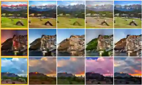 大部分使用 Mac 系统的用户默认动态壁纸是位于洛杉矶卡特琳娜岛的一天场景变化,对应着清晨、日出、正午、傍晚、入夜、凌晨的时移变化,固定机位间隔拍摄可以作为取景,然而这将花费一天时间。如何利用一张高分辨率图像达到时移自然场景的合成,是 HiDT 要实现的任务,文章称之为 Daytime Translation,图 1 展示了任务效果。