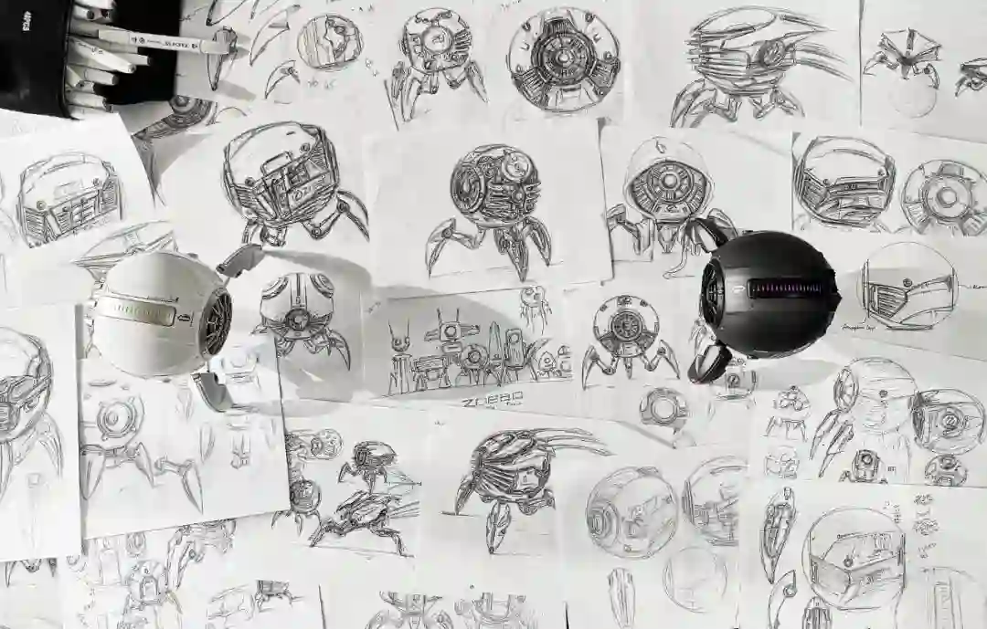 黄勇是一个重度机甲科幻迷,从小就爱玩星际争霸、爱看《异形》等科幻电影。长大之后,黄勇成了一名工业设计师,工作之余,他时常会画一些机甲科幻风的草图,后来他尝试将这种设计语言应用到蓝牙音箱上,于是孵化出了第一代音箱的雏形。
