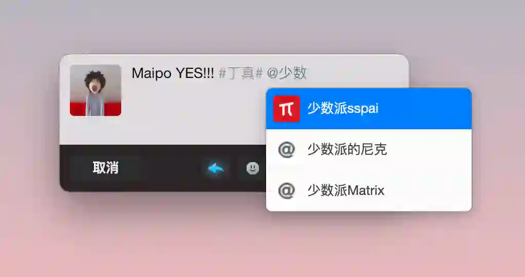 支持添加默认的一些表情,但没有官方客户端丰富,输入文本后会自动显示字数计数,此外「Mac 客户端」小尾巴也算是 Maipo 用户专属了。