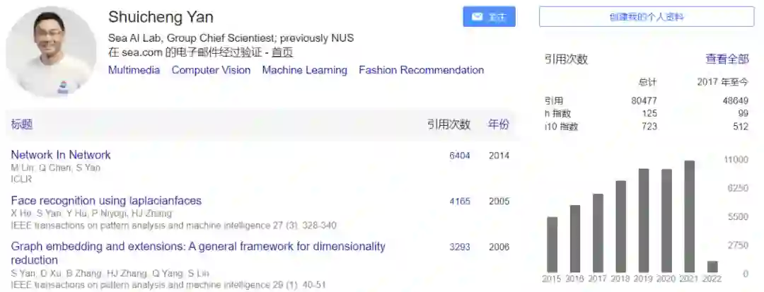 颜水成的主要研究领域涉及计算机视觉、机器学习和多媒体分析。到目前为止,他已经在顶级国际学术期刊和会议上发表超过 600 篇论文,H 指数为 125。2014 至 2020 年,他已经 6 次入选「Thomson Reuters 全球高被引学者」(2017 年除外)。