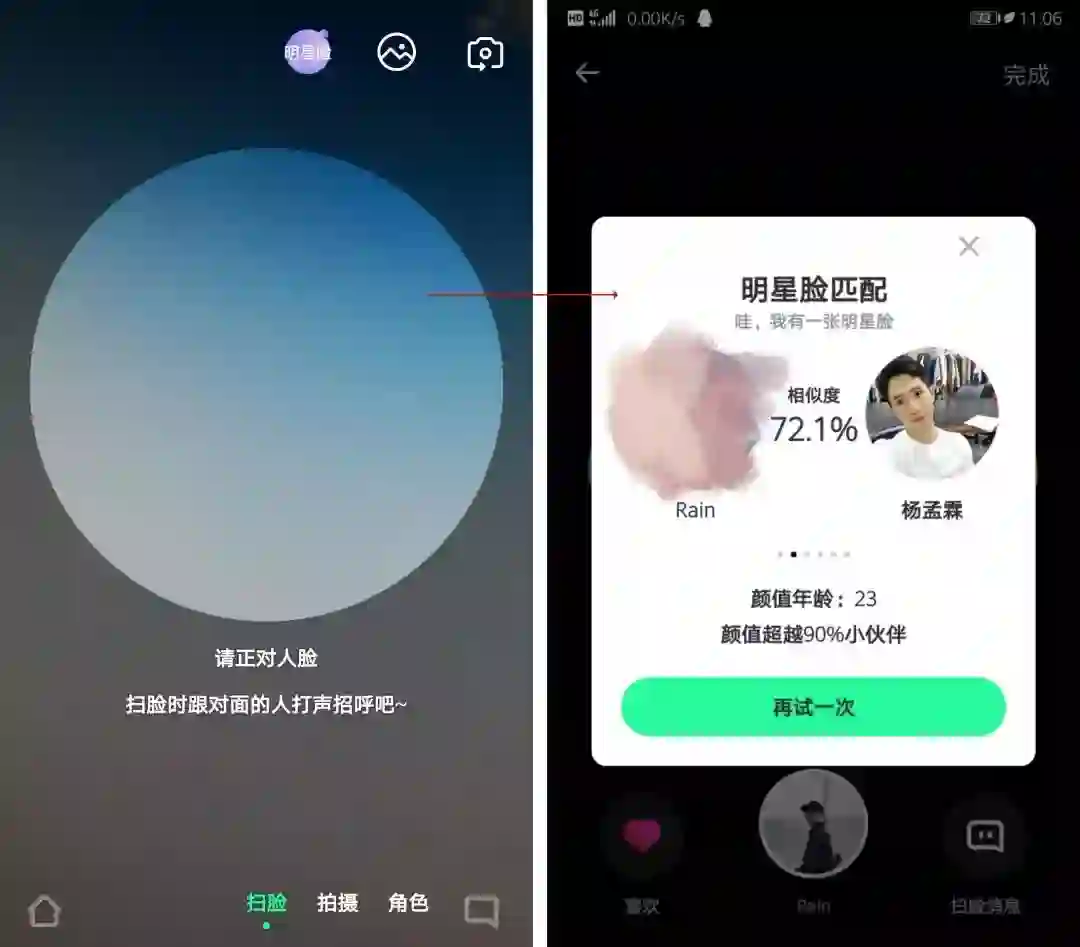 「人脸社交」有明星脸匹配、扫脸加好友。