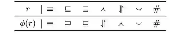 表2 当被替换词的词性是单调向下的时候,投射函数的映射关系。r是单词级别的逻辑关系
