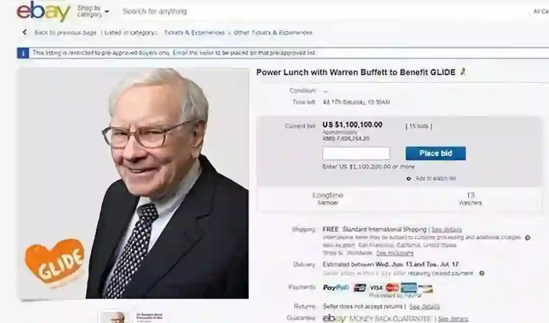 巴菲特午餐开拍:4小时4人竞拍 但叫价已超百万美元