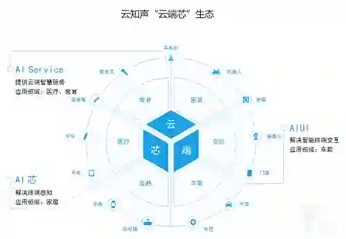不同于寒武纪等公司聚焦于服务端芯片,云知声看准的是IoT市场,做的是边缘端芯片,并于2014年提出「云端芯」战略,布局各个生态领域。