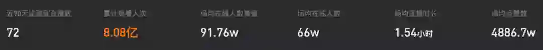 根据新抖的数据,刘畊宏近90天直播72场,几乎每场直播点赞都近5000万,在线观看人数更是近百万。