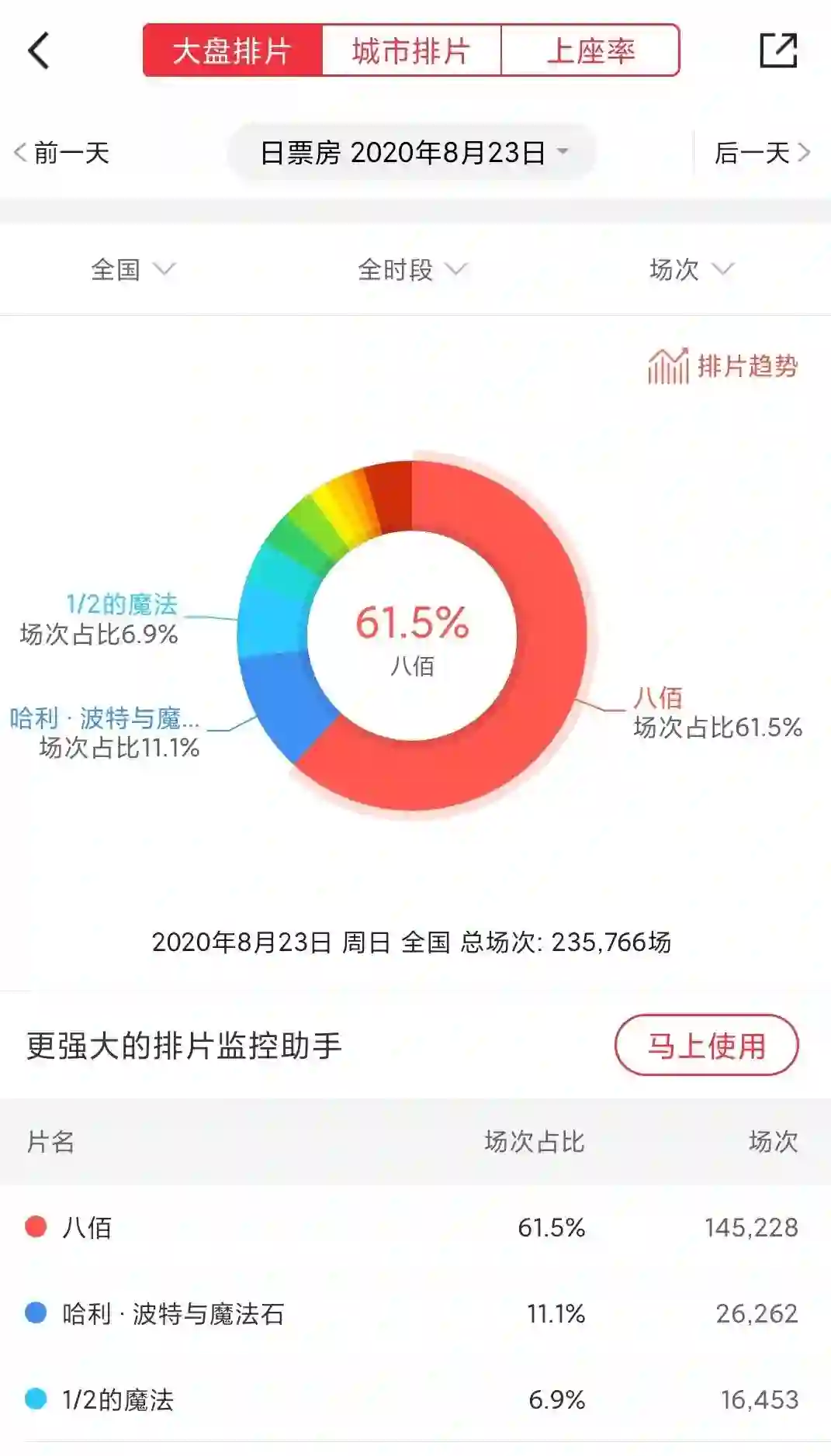 在排片方面,各大院线也似乎“独宠”《八佰》,今日(23日)排片超过60%,远高于第二名票房的《哈利波特与魔法石》。