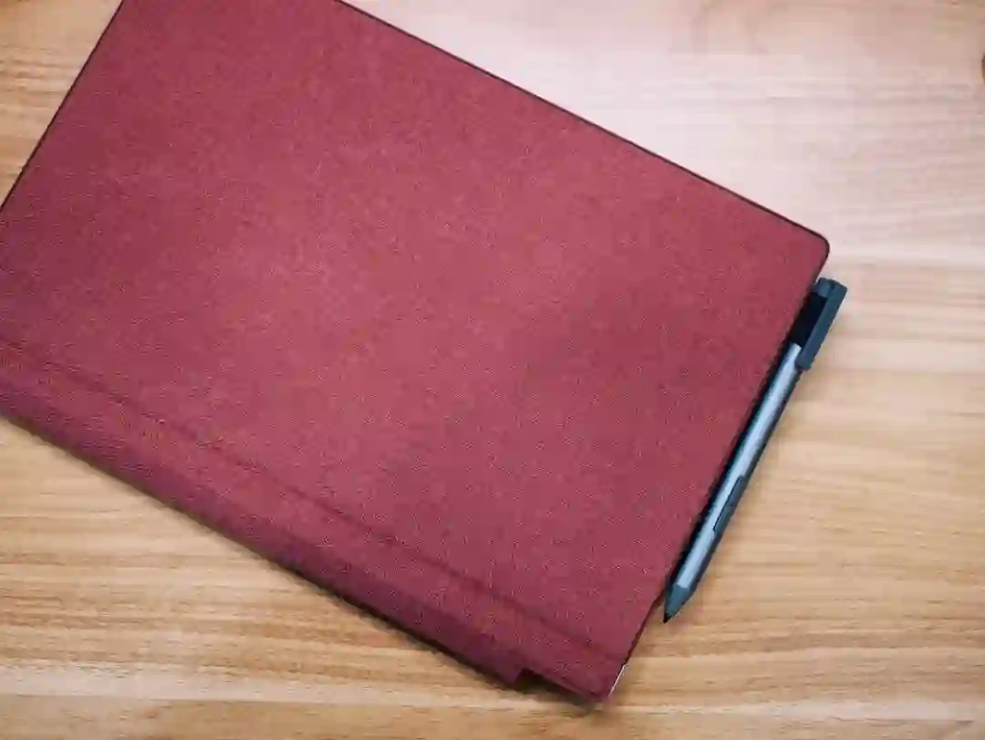 Duo 之名应该来源于所谓的「二合一设备」分类,如果你像我一样是先熟悉 iPad 等平板电脑,接受「在一块屏幕的基础上添加屏幕支架、键盘盖等配件」这样的设定,应该不会对 FydeTab Duo 的形态感到陌生。比起将支架与机身融为一体的方案,我还是更习惯它这样完全的分体式设计,配件损坏的话我也可以单独购买更换(用了一个多月,边角开始出现磨损,后续的照片应该可以观察到)。