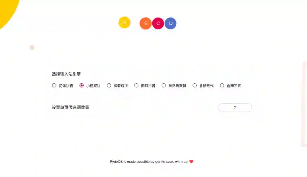 ,后来才发现自带的「真文韵」输入法其实支持全拼和双拼(具体支持的双拼方案见下图)。真文韵输入法可以直接在 Chromium 浏览器和 Android 子系统中使用,它的实际使用体验,可以参考同样基于 RIME 输入法引擎,也就是我在 macOS 上使用的鼠须管:性能优秀、能满足日常办公,但并非开箱即用,词库还是要养一段时间才行。总体来说双拼输入已经不是我使用 FydeOS 的主要问题了。