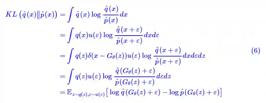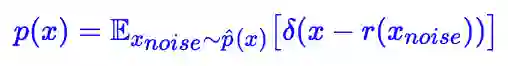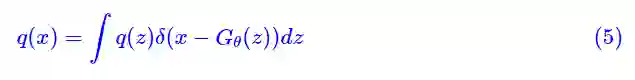 我们首先来介绍一下 Learning Generative Models using Denoising Density Estimators [1] 的思路。按照 GAN 和 VAE 的通常习惯,我们是希望训练一个映射 x=G(z),使得从先验分布 q(z) 中采样出来的 z 都能被映射为一个真实样本,用概率的话说,那就是希望拉近 p(x) 和下述的 q(x) 的距离: