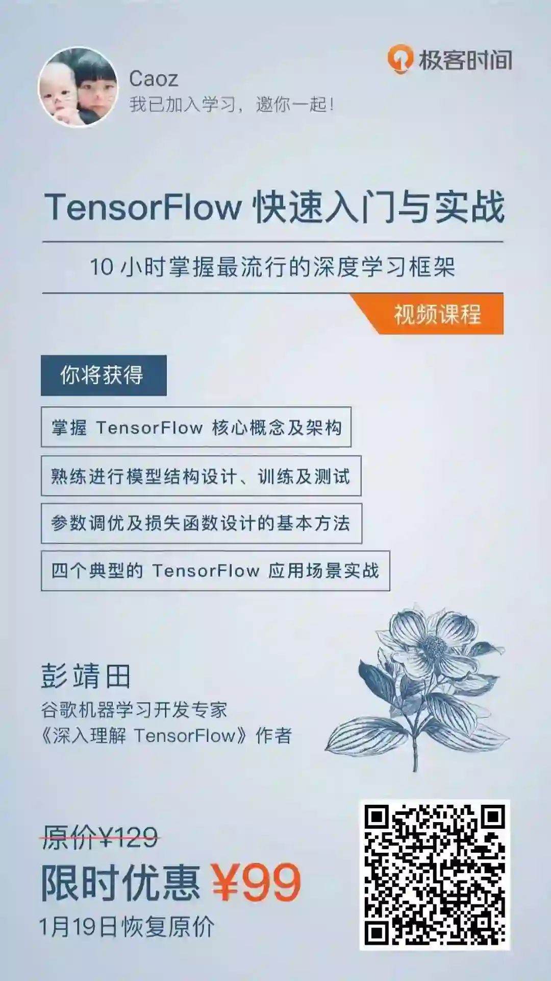 讲师彭靖田,是谷歌机器学习开发专家,曾为 TensorFlow 社区全球前 40 的贡献者,也是国内第一本深度剖析 Google AI 框架的畅销书《深入理解TensorFlow》的作者。