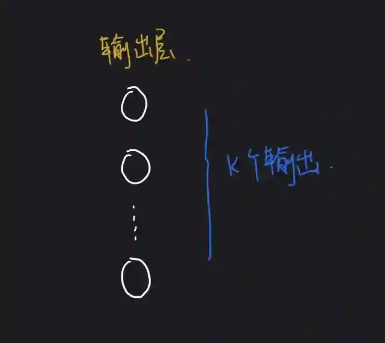 前面讲的简单逻辑回归的只有一个输出变量,但是在神经网络中输出层可以有多个神经元,所以可以有很多种的输出,比如 K 分类问题,神经元的输出是一个 K 维的向量: