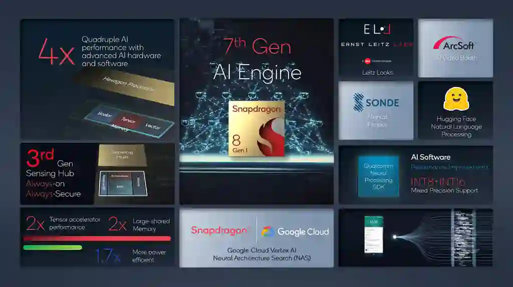 这还不是最大的,全新一代骁龙 8 可谓进行了全方位的升级,其搭载的第 7 代 AI 引擎实现了性能翻四倍的表现,提升了不止一个台阶,带来了全新的体验。