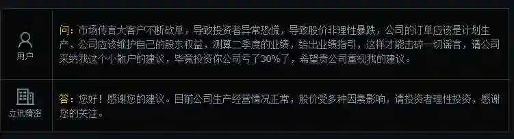 立讯精密回应“大客户不断砍单”:生产经营情况正常