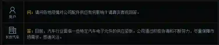 长安汽车:汽车行业面临一些特定汽车电子元件的供应紧张