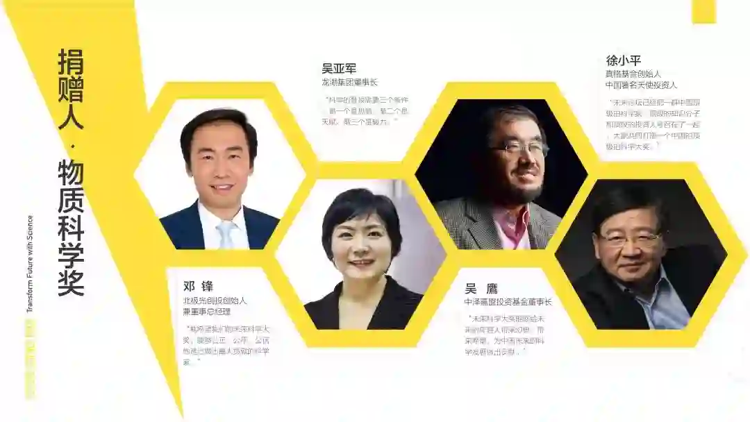 未来科学大奖成立于2016年,是由科学家、企业家群体共同发起的民间科学奖项。未来科学大奖关注原创性的基础科学研究,奖励在大中华区做出杰出科技成果的科学家(不限国籍)。奖项以定向邀约方式提名,并由优秀科学家组成科学委员会专业评审,秉持公正、公平、公信的原则,保持评奖的独立性。