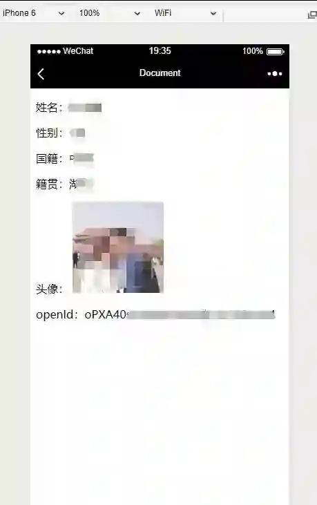 //通过上一步获取的access_token和open_id获取userInfo即用户信息 let getUserUrl = `https://api.weixin.qq.com/sns/userinfo?access_token=${access_token}&openid=${open_id}&lang=zh_CN`;