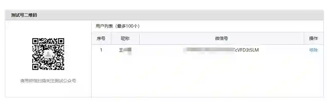 最后拿出自己微信扫码关注该测试号即可,如下图所示