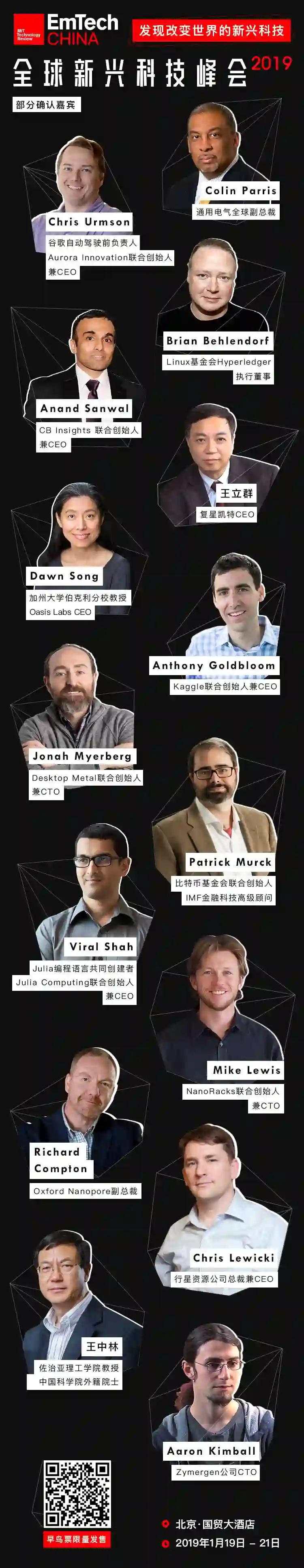 目前,EmTech China 2019 全球新兴科技峰会已进入筹备阶段!本次会议不论从嘉宾量级、会议规模、内容丰富程度上看,都将大幅提升!目前已有 15 位全球科技领袖确认出席,更多重磅嘉宾陆续确认中。已确认的嘉宾有: