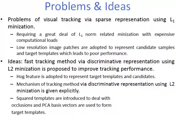 本文提出了一种在贝叶斯框架下基于判别表示的目标跟踪算法。首先,利用HOG特征提取目标模板和候选样本的纹理特征。其次,提出一种新颖的判别模型,并采用ℓ2正则最小均方方法对判别模型进行求解,新模型具有闭合解和非常高的计算效率。最后,引入一种新颖的似然函数和考虑遮挡因素的模型更新机制,以改善跟踪效果。作者对15个具有挑战性的视频,进行跟踪仿真并进行定性和定量评价。实验证明,本文所提算法具有较高的覆盖率和较低的中心点误差。