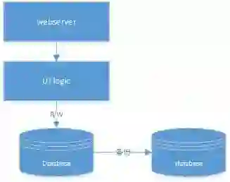 从上图可以看到计算机器上主要部署2部分内容,一部分是webserver(轻量级可以考虑niginx,lighttpd等),一个是UI逻辑处理部分,lamp架构则使用php语言来搞定这个问题。因为数据是最重要的,所以database则明显需要2台机器,一台主机,一台做冗余备份。lamp使用mysql来存储数据。