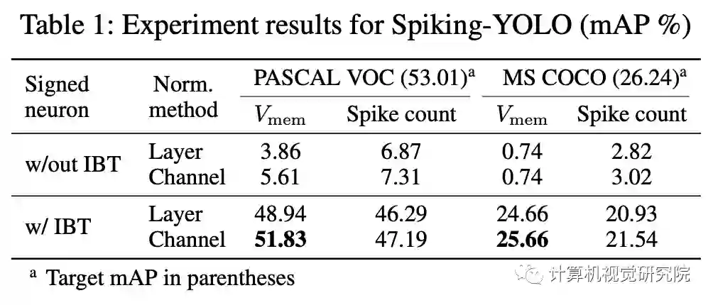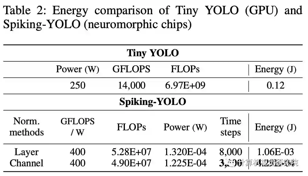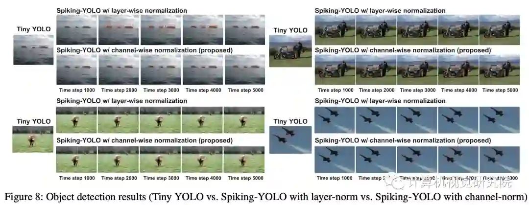 提出一种在深度SNN中能够进行快速精确信息传输的Spiking-YOLO算法。这是第一次将深度SNN成功应用于目标检测任务的工作;