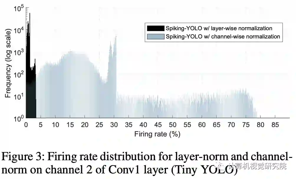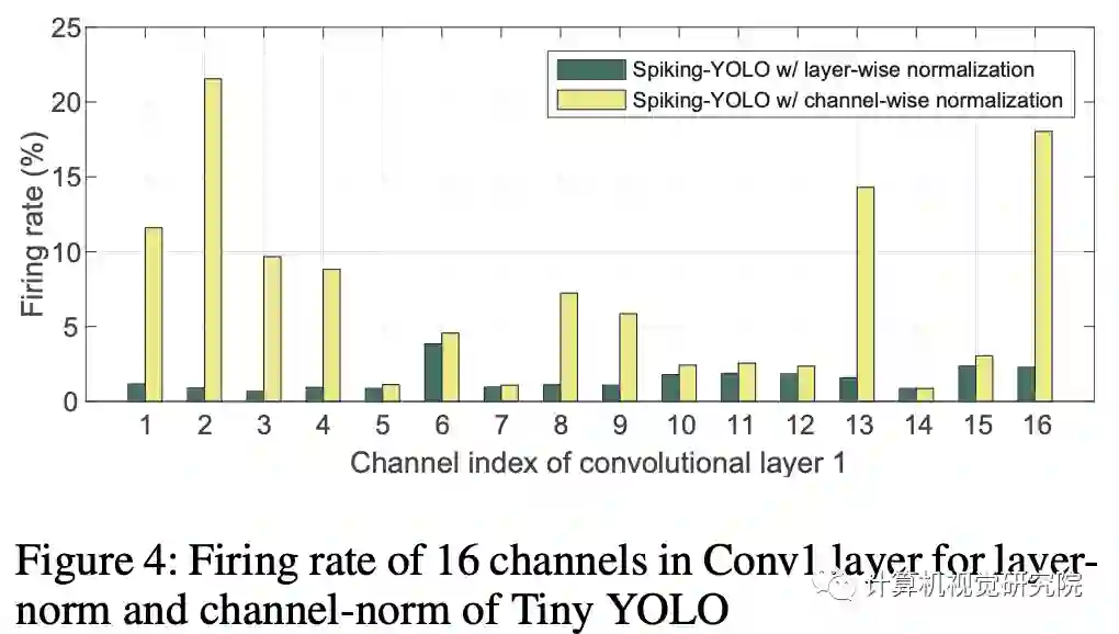 常用的SNN归一化方法过于低效,导致脉冲发射频率过低。由于SNN需要设定阈值进行脉冲发射,所以要对权值进行归一化,这样有利于阈值的设定,而常用的SNN归一化方法在目标检测中显得过于低效,后面会详细阐述