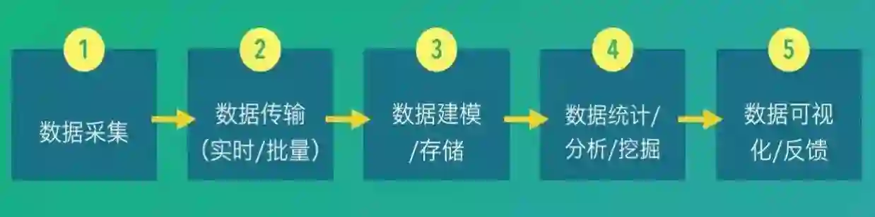 一个典型的数据采集分析统计平台,对数据的处理,主要由如下五个步骤组成: