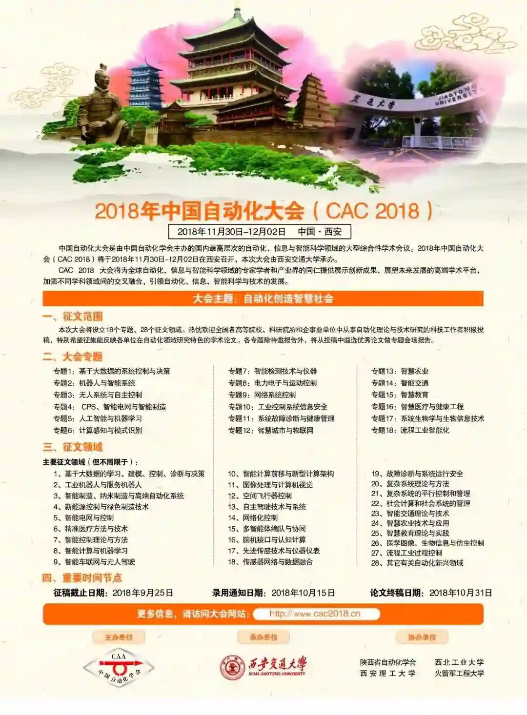 🔗【CAC 2018】2018中国自动化大会会议注册已开通!