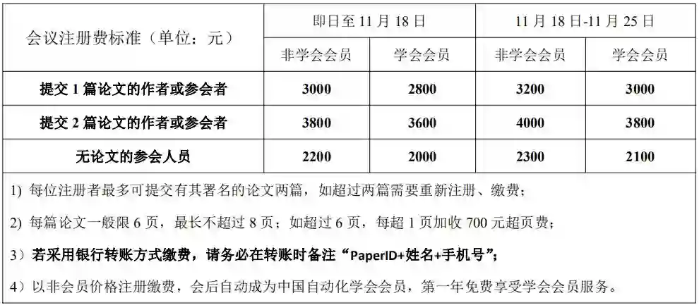 3. 若采用银行转账方式缴费,请务必备注“PaperID+姓名+手机号”以便财务确认缴费状态;